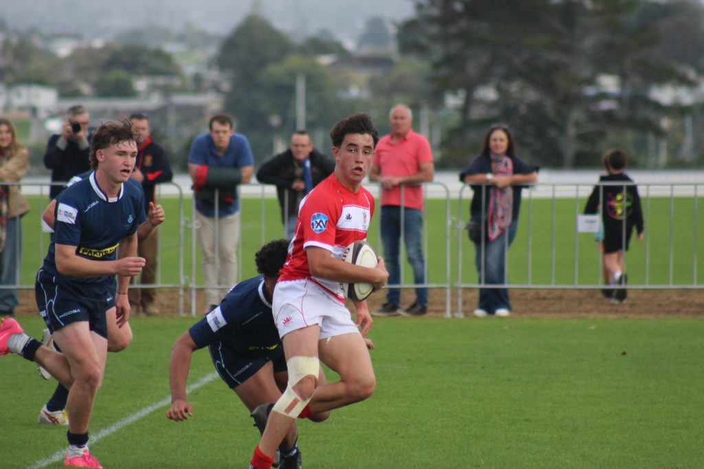 I think we could all agree that Nico Stanley would be first on that team list right? He made NZSS last year and started and so automatically he would be your pivot point for your team. Nico is a massive kid that is tall with a wide back and shoulders, plays very hard on defence and can run lines with the best of them, and so that’s settled. Here is the other thing though when it came to automatic selections my second and third picks were right away Alapati Tusa Soagia from St Peters School in Cambridge at 1st 5/8 and right to another CNI (Central North Island) player Noah Rogers from Lindisfarne College who would join Nico in the midfield. Noah Rogers, if you haven’t seen him play, has so much offence to his game that he is a hard player to pin down when creating a game plan for him. Here is why. He will crash ball on you to test you and one on one tackles dont work on him so when he runs over you or has you dragging off his jersey you have to think of something else. Now you push him outside he has that quick footwork to draw two players in and an offload. Then he has a passing and kicking game as well so that brings wingers into the mix and its just not something easy to stop.